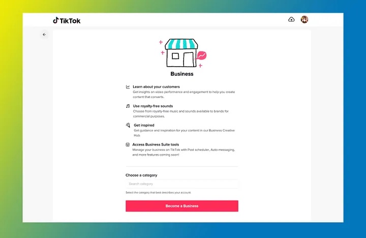 Creating a business account is simple — and free. Completing this step alone unlocks features not available to other users, such as advanced analytics and access to the TikTok Ads Manager.